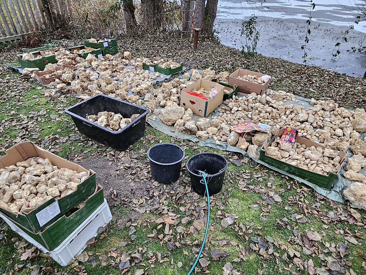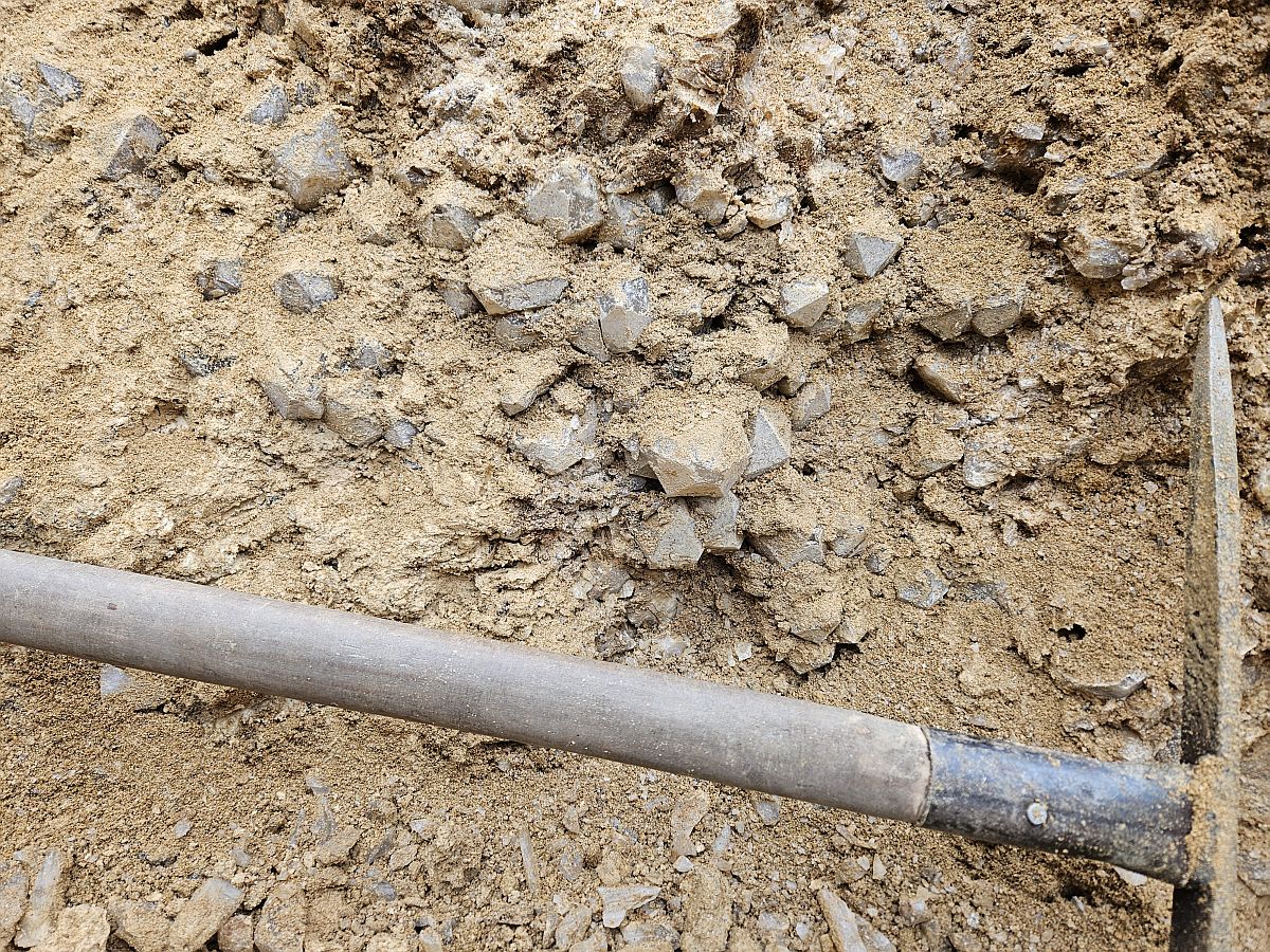 Protože jsme měli historii prací dokonale zdokumentovanou, nečinilo žádný problém na ně navázat a to i přesto, že lokalita je v současnosti pastvinou. Provedli jsme průzkumné rýhy na obou koncích původního výkopu a druhou rýhou jsme zastihli pokračování žíly a následně jsme objevili dutinu vystlanou krystaly a drúzami krystalů o velikosti až prvních decimetrů. Zbytek dne až do noci a celý následující den jsme žílu rozebírali. Vytěžený materiál jsme na několikrát odvezli ke mně na chalupu a v sobotu, ještě s kamarádem Vaškem, jsme kameny nahrubo omyli. Protože byly asi 2°C pod nulou, voda nám pod rukama zamrzala, ale jak postupně krystaly vylézaly z jílu, nikomu to nevadilo. Škoda, že podobně jako u dutiny, kterou jsme těžili před lety, byla většina krystalů oddělena od matrix, takže jsme vybírali převážně volné krystaly a drúzy byly vzácnější. Přesto několik dokonalých, nepoškozených drúz si každý z nás odnesl.