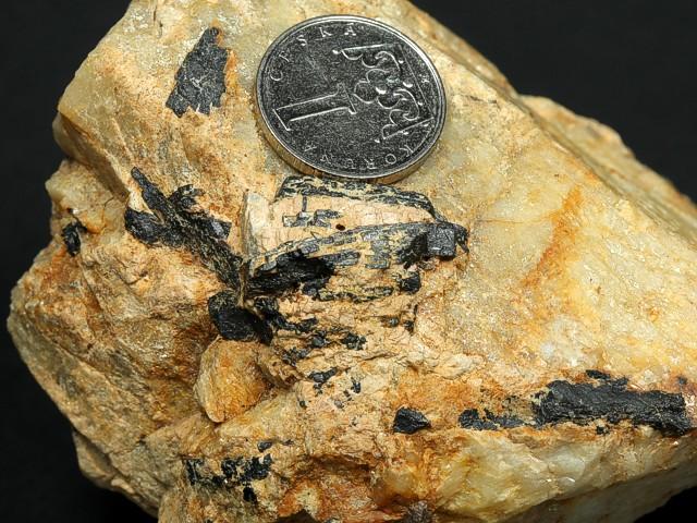 Vzorek č.9 Tantal-niobát (ferotantalit až tapiolit) na berylu, Šejby. Velikost tabulek až 20 mm. Raritní i estetická věc.